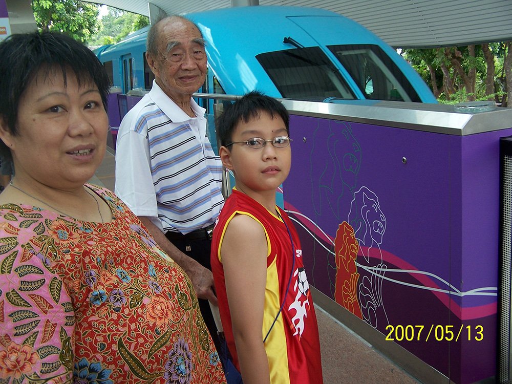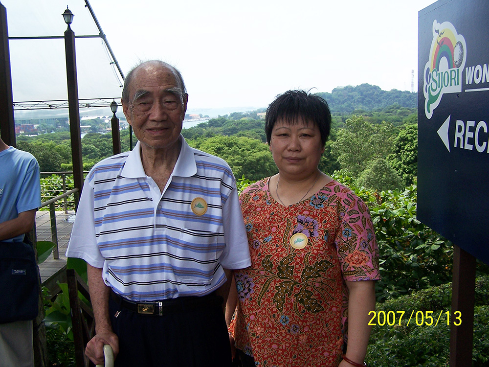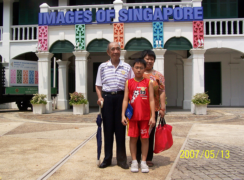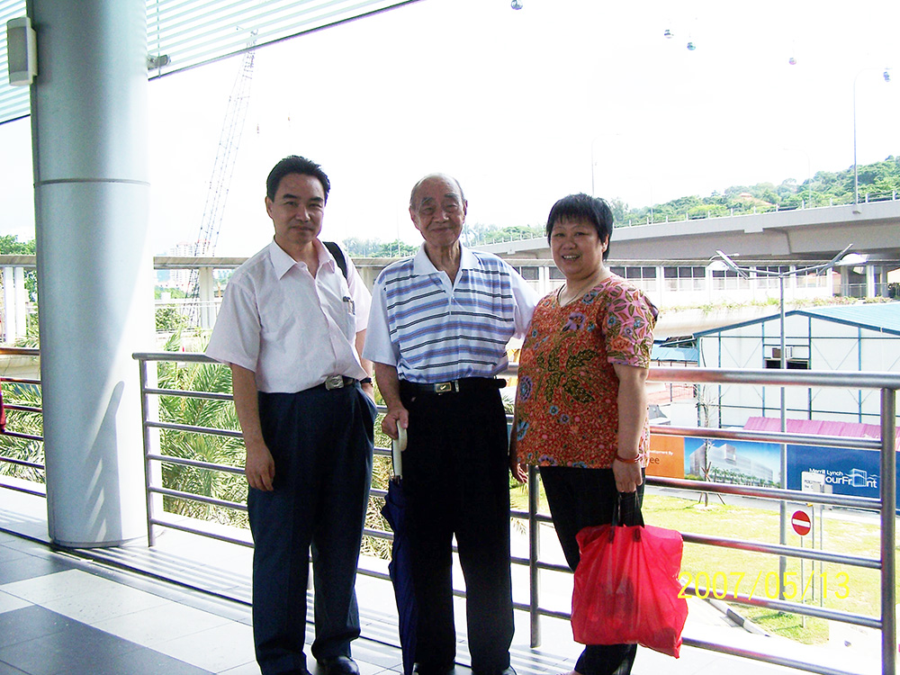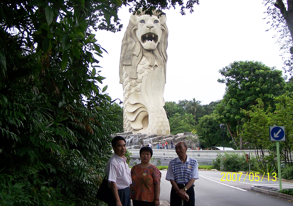 与焌民、丽明在鱼尾狮塑像前