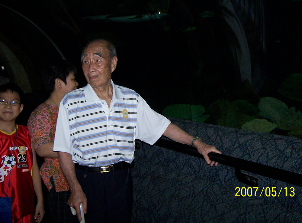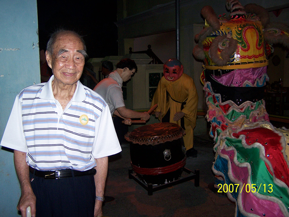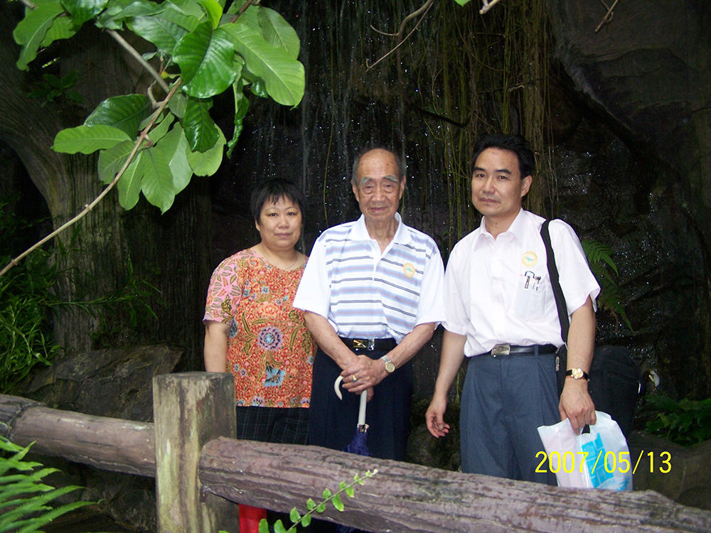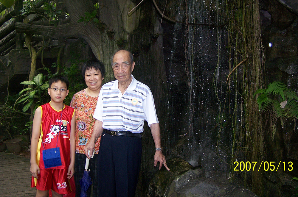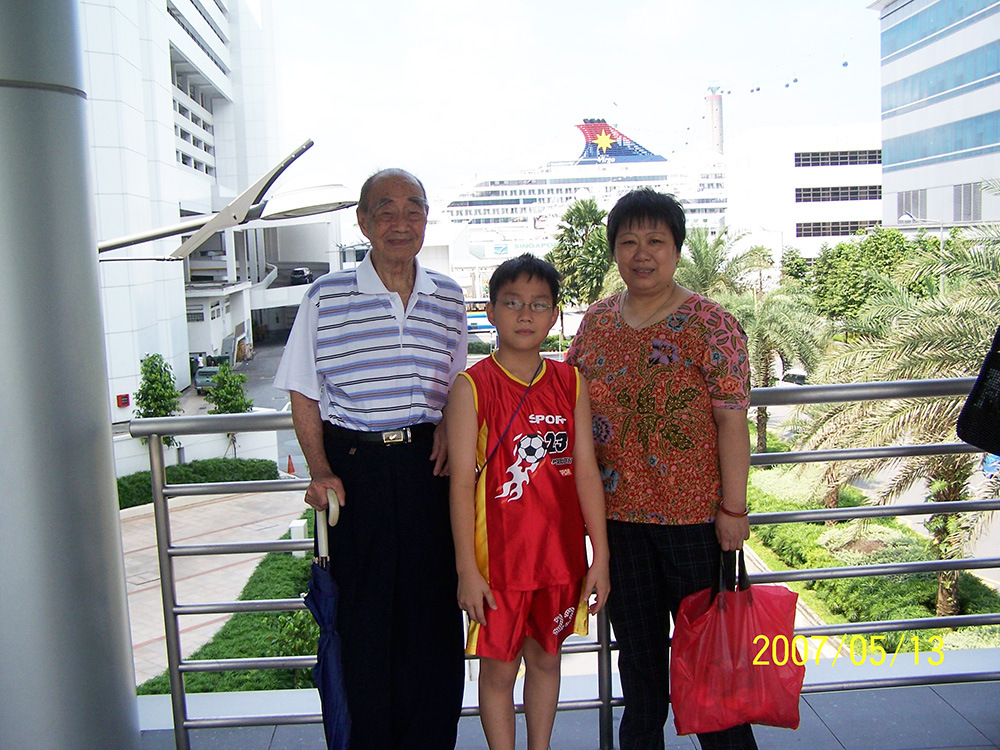 与焌民、丽明在鱼尾狮塑像前